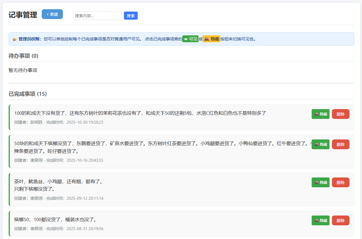 7、系统包含可操作完成与否的记事提醒功能,事项没有完成是提醒;