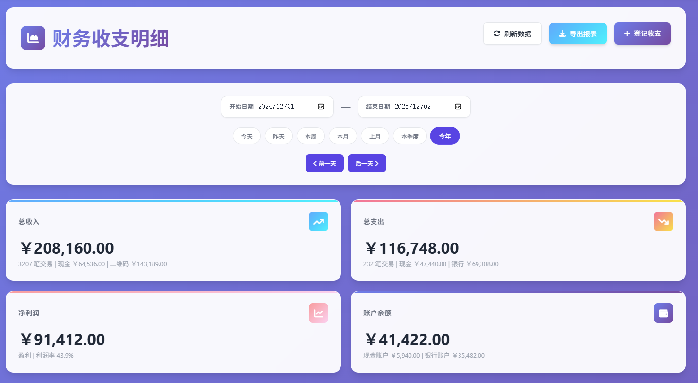 2025年最新开发的全行业收支系统网络版,默认台球行业,可自行更改收支项目...[详情]