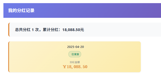 3、管理员可设置股东占股比例,系统将针对占股进行自动计算分红结果;